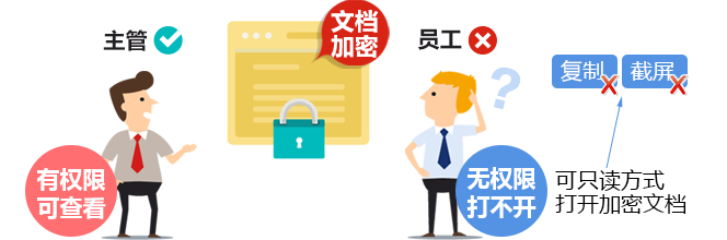 ♦ 通过IP-guard只读加密,用户只能以只读方式打开加密文档,禁止复制、截屏等。
