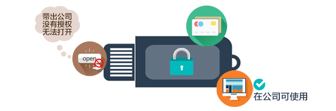 ♦ 使内部移动存储在部门以外的非授信环境中无法使用,防止因U盘丢失导致内部机密泄露